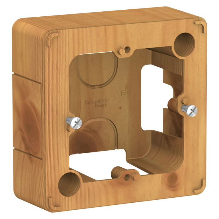 Коробка Systeme Electric (ранее Schneider Electric) BLANCA (ясень) подъемная, однопостовая предназначена для наружного монтажа электроустановочных изделий серии Blanca. Коробка рассчитана на установку розетки до 32 А. Изделия цвета Ясень обладают уникальным рисунком, напоминающим древесный сруб. Имеется возможность соединения нескольких коробок. Размеры коробки: 86*86*34 мм. Корпус изделия выполн ен из ABS-пластика.