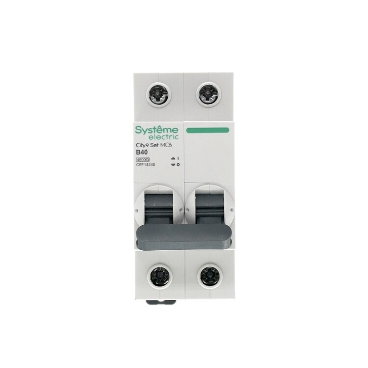 Автоматический выключатель серии City9 Set Systeme Electric, 2-полюсный, номинальный ток 40 А, характеристика B, Icn = 4.5 кА. Применяется в электрических сетях напряжением 230 В. Предназначен для защиты от перегрузок и токов короткого замыкания. Оснащен механизмом «мгновенной коммутации». Ударопрочный корпус из специального пластика с 6 металлическими заклепками. Безопасные клеммы исключают попадание кабелей в заклеммное пространство (ранее Schneider Electric Easy9 EZ9F14240).