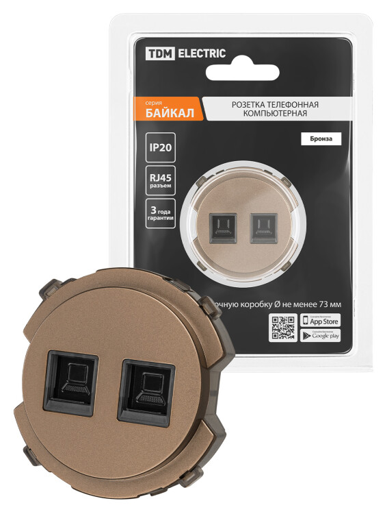 Розетка компьютерная двойная RJ45 бронза, "Байкал" TDM (кр.1шт)