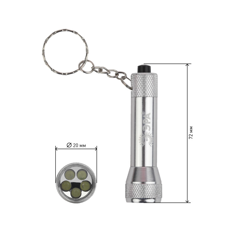 ЭРА BB-509 компактный светодиодный фонарь-брелок в прочном корпусе из анодированного алюминия. 5 LED-элементов мощностью 0,7 Вт создают яркий белый свет дальностью 35 метров. Необходимые для работы фонаря батарейки поставляются в комплекте (3 х LR44). Прост в управлении. Кнопка включения покрыта мягким прорезиненным материалом. Благодаря своему лаконичному дизайну и базовому серебристому цвету корпуса подойдет человеку любого возраста и пола. Имеет надежное крепление, чаще всего используется на связках ключей, на походных рюкзаках. Этот фонарь приятно и удобно ежедневно применять в быту.
