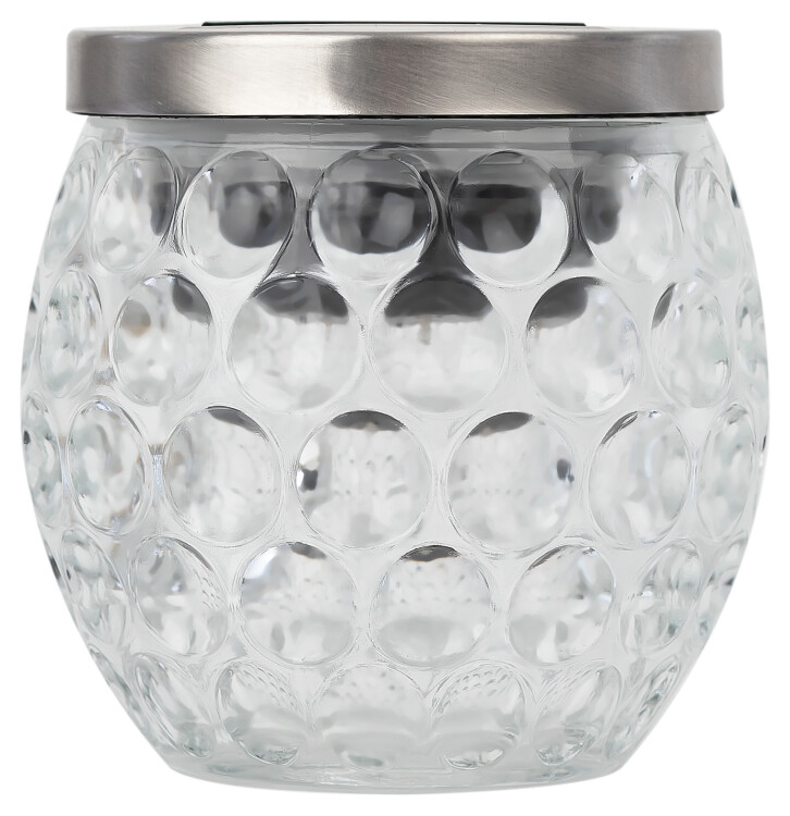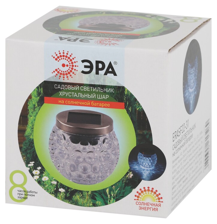 Садовый светильник Хрустальный шар имеет бе лое свечение, и прекрасно подойдет для освещения террасы, беседок, дорожек и клумб. Диаметр 10 см. Белое свечение светодиодов.