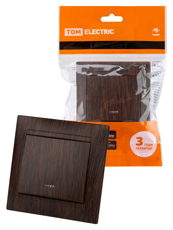 Выключатель 1 кл. с подсветкой 10А венге "Лама" TDM (кр.10шт)