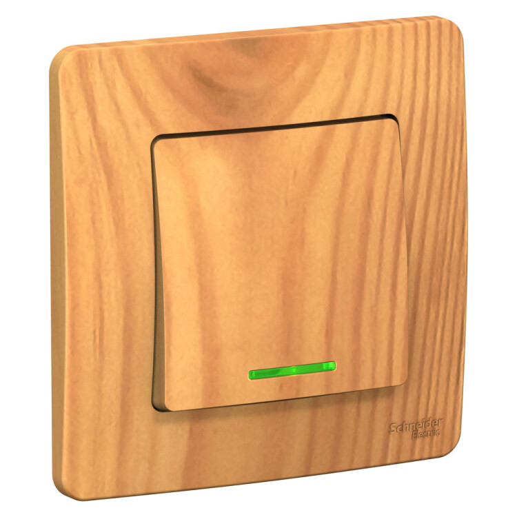 Выключатель Systeme Electric (ранее Schneider Electric) BLANCA (ясень, скрытой установки) одноклавишный предназначен для сетей до 250В, на ток до 10А. Подсветка делает его легко находимым в отсутствие освещения. Выключатель подходит для большинства типов ламп, включая люминесцентные. Изделия цвета Ясень обладают уникальным рисунком, напоминающим древесный сруб.