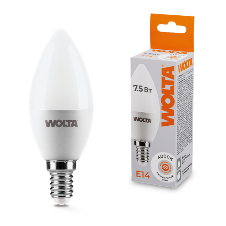 WOLTA Лампа LED C37 7.5Вт 625лм 4000К Е14 1/50
