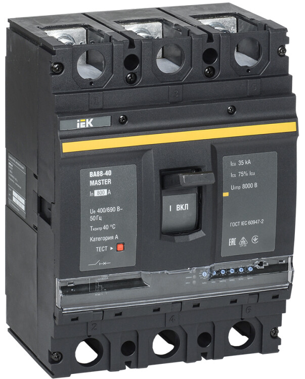 Автоматический выключатель в литом кор пусе ВА88 MASTER предназначен для защиты электрических сетей от токов короткого замыкания, токов перегрузки, недопустимых снижений напряжения, а также для проведения тока в нормальном режиме.