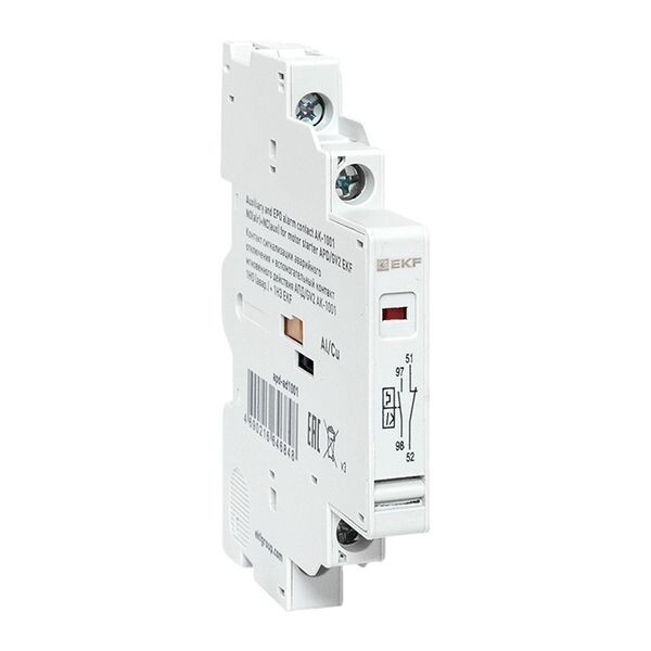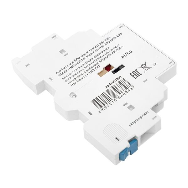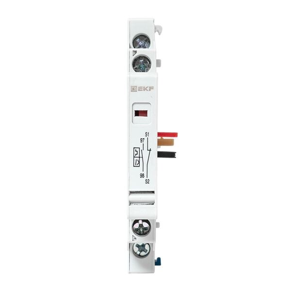 Дополнительный аксессуар для автомата пуска (защиты) двигателя. Блок с двумя контактами, монтируемый на АПД. Один контакт — аварийный, второй — вспомогательный. Контакты механически связаны с главными силовыми контактами АПД. Когда автомат включен, меняется положение и этих дополнительных контактов (нормально-разомкнутые (НО/NO) замыкаются, нормально-замкнутые (НЗ/NC) размыкаются, и наоборот). Аварийный контакт (1НО) срабатывает только при отключении защитой. Вспомогательный (1НЗ) работает как обычный доп. контакт. Устанавливаются на корпус АПД сбоку (слева) путем защелкивания. Подключаются к низковольтным цепям управления с помощью винтовых клемм. Используется для АПД-32 и GV2P.