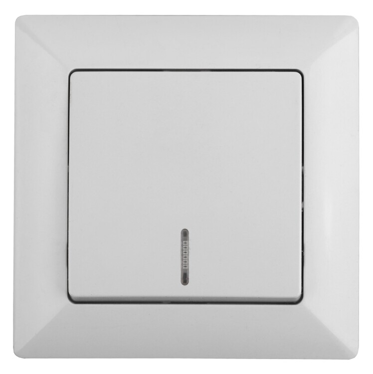 Выключатель Intro Solo 4-102-01 одноклавишный с подсветкой, 10А-250В, IP20, СУ, белый (кр. 1шт)