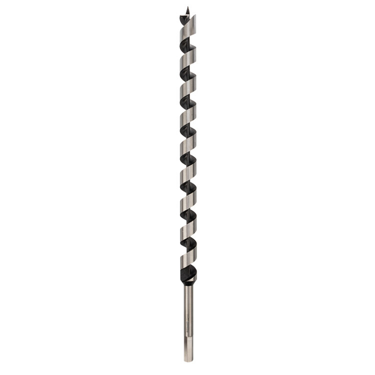 Винтовое сверло предназначено для сверления отверстий под нагели, дюбели. Используется при выполнении строительныx, ремонтныx и столярныx работ.Сверло выполнено из закаленной инструментальной стали, что повышает износостойкость и долговечность инструмента. Центрирующее острие на конце рабочей части позволяет удобно засверливаться в материал и уменьшает осевую нагрузку, шнековая спираль Левиса обработана до зеркального блеска, из-за чего отверстия получаются гладкими, а стружка отводится более эффективно. Хвостовая часть, выполненная в виде шестигранника, надежно фиксирует сверло в патроне инструмента. Устанавливается на дрель или шуруповерт с высоким крутящим моментом.