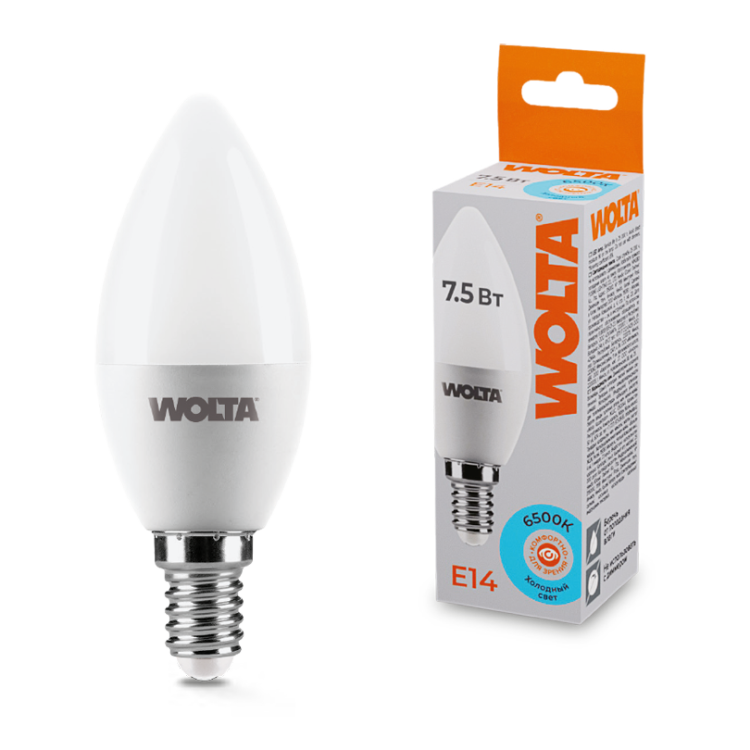 WOLTA Лампа LED C37 7.5Вт 625лм 6500К Е14 1/50