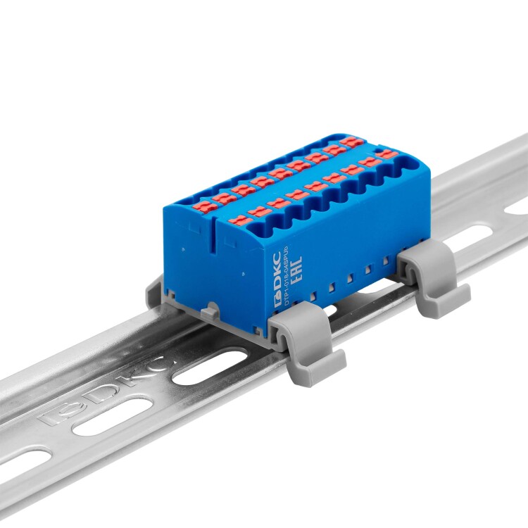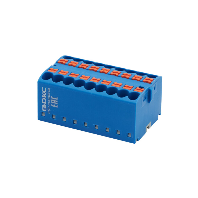 Блок распределительный с push-in зажимом предназначен для распределения потенциала на несколько точек подключения. Монтаж осуществляется на DIN-рейку шириной 15 или 35 мм и на монтажную плату с помощью адаптеров. Температура эксплуатации – от -40 до +105 °C. Корпус выполнен из полиамида 6.6 с классом горючести V0 UL-94. Цвет – синий, 18 точек подключения, номинальное сечение проводников – 2,5 мм2. Габариты (В×Ш×Г) – 21,7×47,2×28,8 мм.