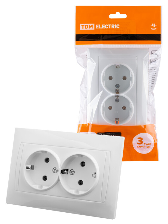 Розетка двойная 2П+З 16А 250В белая "Лама" TDM (кр.6шт)