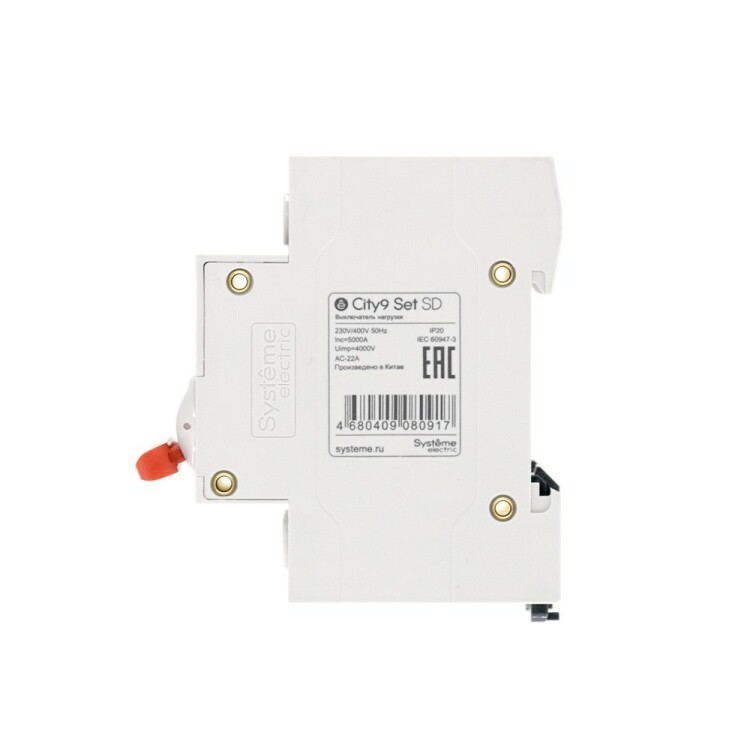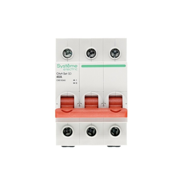 Выключатель-разъединитель серии City9 Set Systeme Electric, 3-полюсный, номинальный ток 40 А, с красной рукояткой управления. Предназначен для включения и отключения нагрузок в электрических сетях напряжением 400 В. Категория применения AC-22A. Двойной разрыв цепи обеспечивает гарантированное отключение питания и отсутствие сваривания контактов. Крепление на DIN-рейку шириной 35 мм. (ранее Schneider Electric Easy9 EZ9S16340).