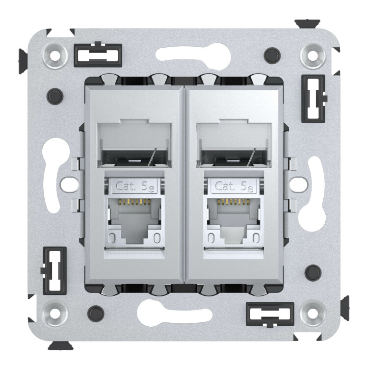 Компью терная розетка двойная используется для подключения компьютерной техники и соединения с патч-панелью. Компьютерная розетка предназначена для скрытого монтажа в стену. Розетка RJ-45 категории 5e – это наиболее популярная на сегодняшний день модель. Она позволяет организовать сеть с частотой 125 МГц и скоростью до 1000 Мбит/с. Материал – металл, термопласт.