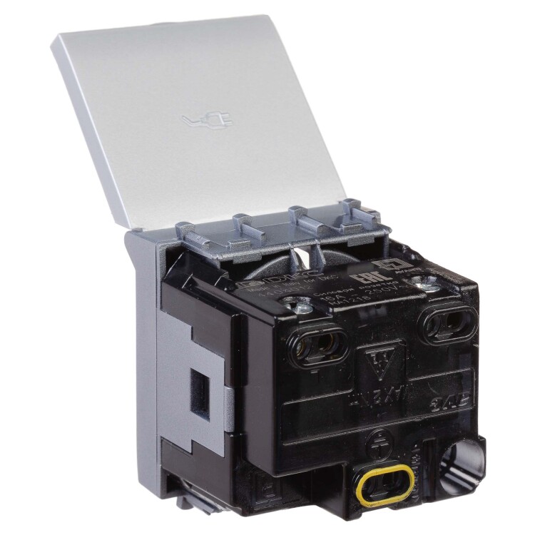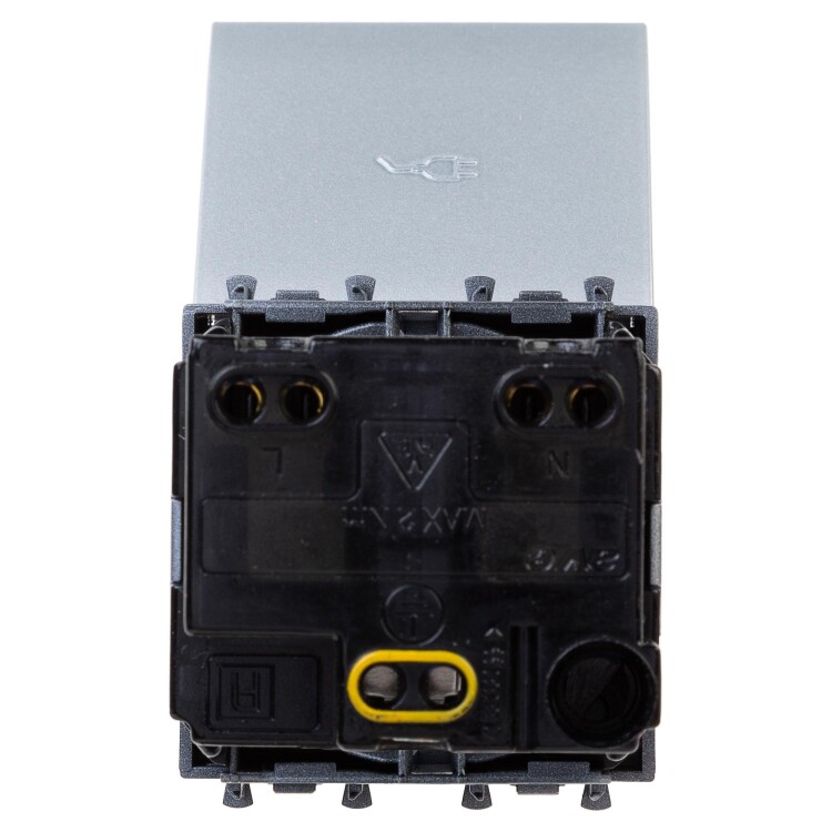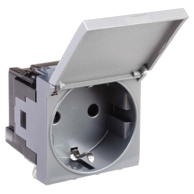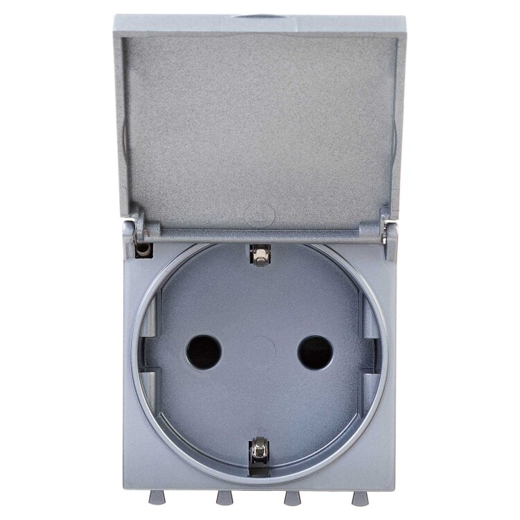 Розетка 2P+E (однофазная розетка с заземлением) модульная с крышкой от ДКС применяется для подключения различных электроприборов. Изделие предназначено для монтажа в систему кабельных коробов «In-liner Front» и систему организации рабочих мест «Сотто» (Sotto) при помощи рамок-суппортов и каркасов «Avanti» (код 4400912 и т. д.). Лаконичные формы электроустановочных изделий «Avanti» отлично сочетаются с глубокими цветами. Пластиковые части устройства имеют оттенок «Закалённая сталь». Это актуальный цвет с оттенком металла, который легко сочетается с другими, придавая им оттенок богемной утончённости. Производитель оставляет за собой право вносить во внешний вид изделия изменения, которые не влияют на его функционал, безопасность и надёжность.