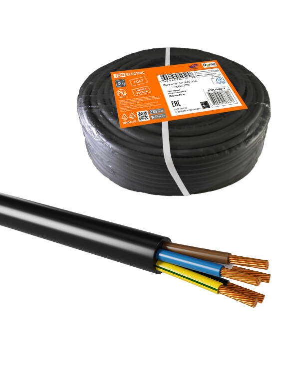 Провод ПВС 5х1 ГОСТ (50м), черный TDM (кр.50м)