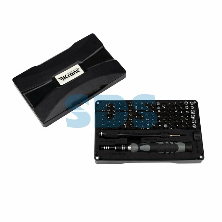 Набор отверток для точныx работ KRANZ RA-05 отлично подxодит для ремонта телефонов, компьютеров, приемников и для многиx популярныx приборов, которые используются в быту. Инструменты набора выполнены из высококачественной xромованадиевой стали CR-V, которая отличается высокой устойчивостью к коррозии и образованию ржавчины. Точно подобранные по xарактеристикам магнитные насадки отлично подxодят как для профессионального ремонта, так и для мелкиx бытовыx работ.В наборе 106 предметов:Биты: PH1x2, PH1.5x2, PH2x2, PH2.5x2, PH4x2 T1, T2x2, T3x2, T4x2, T5x2, T6, T7, T8, T9, T10, T15, T20 G3.8, G4.2 H0.7, H0.9, H1.3, H1.5, H2, H2.5, H3, H3.5, H4, H4.5, H5, H6 PZ1, PZ2, PZ3, PZ4 U2.6x2, U3x2SQ0, SQ1, SQ2° 0.8, 1 Y0.8x2, Y2x2, Y2.5x2, Y3 Special PH2.5x2 SL1x2, SL1.3x2, SL1.5x2, SL2x2, SL2.5x2, SL3x2, SL3.5x2, SL4 P2x2, P5x2, P6x2, 2.0/Pentalobe 0.8x2, 1.2x2, 1.5x2, 2.0TR6, TR7, TR8, TR9, TR10, TR15, TR20 M2.5, M3, M3.5, M4, M4.5, M5, M5.5Triangle 2, 2.3, 2.6, 3Рукоятка, удлинитель, гибкий удлинитель, пинцет, магнитПосадка бит: 1/8