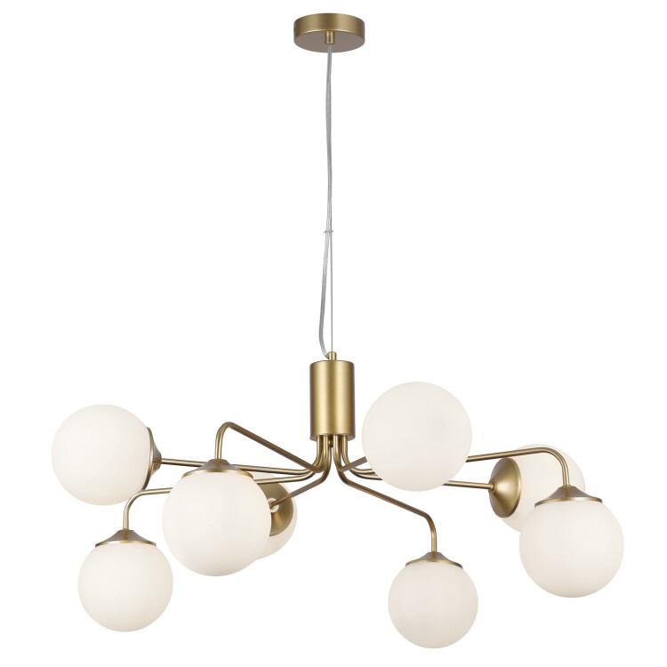 Rivoli Felicity – коллекция оригинальных люстр для современных интерьеров. Корпус люстр потолочных подвесных Felicity изготовлен из лёгкого прочного металла, окрашенного гальваническим способом в цвет латуни. Круглые матовые плафоны расположены «хаотично», рожки направлены в разные стороны, что соответствует самым актуальным трендам дизайна интерьеров – как квартир, так и гостиниц, ресторанов, офисов, общественных пространств. В коллекции Felicity от итальянского бренда Rivoli представлены люстры подвесные под 6 ламп (арт. 3150-306) и люстры подвесные под 8 ламп (арт. 3150-308).