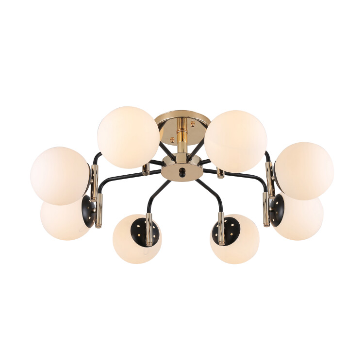 Плафоны люстры Valencia изготовлены из матового стекла. Вы получите свет, комфортный для глаз, без бликов. Форма круга задана и в стеклянных плафонах, и в расположении рожков. Правильная геометрия создает в доме комфортную психологическую атмосферу.