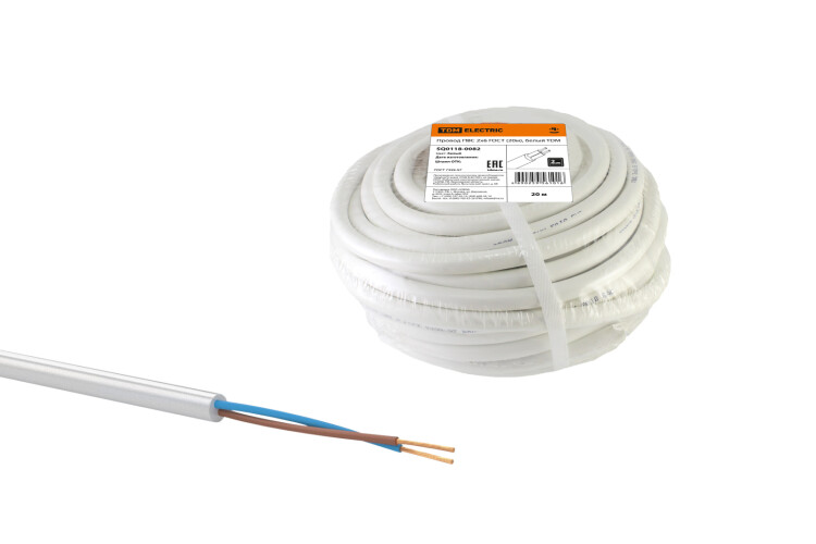 Провод ПВС 2х6 ГОСТ (20м), белый TDM (кр.20м)