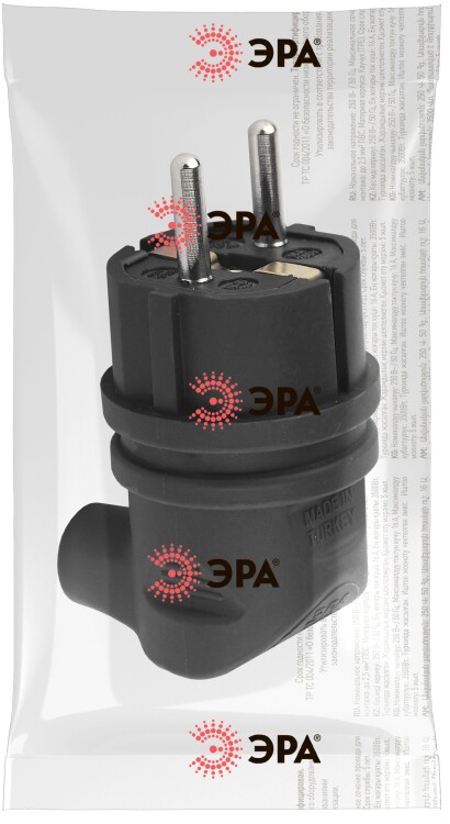 Вилка ЭРА V9-B-IP44 каучуковая с заземлением 90 градусов 16A IP44 черная (кр. 1шт)