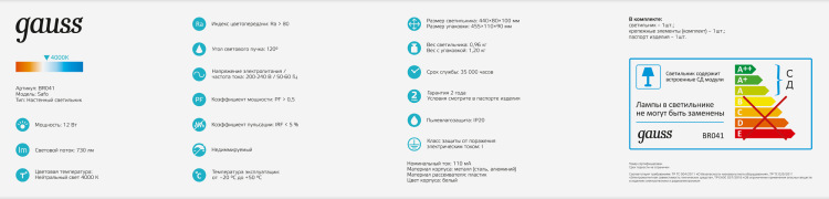 Настенный светодиодный светильник Gauss Safo BR041 12W 730lm 200-240V 400mm LED 1/20