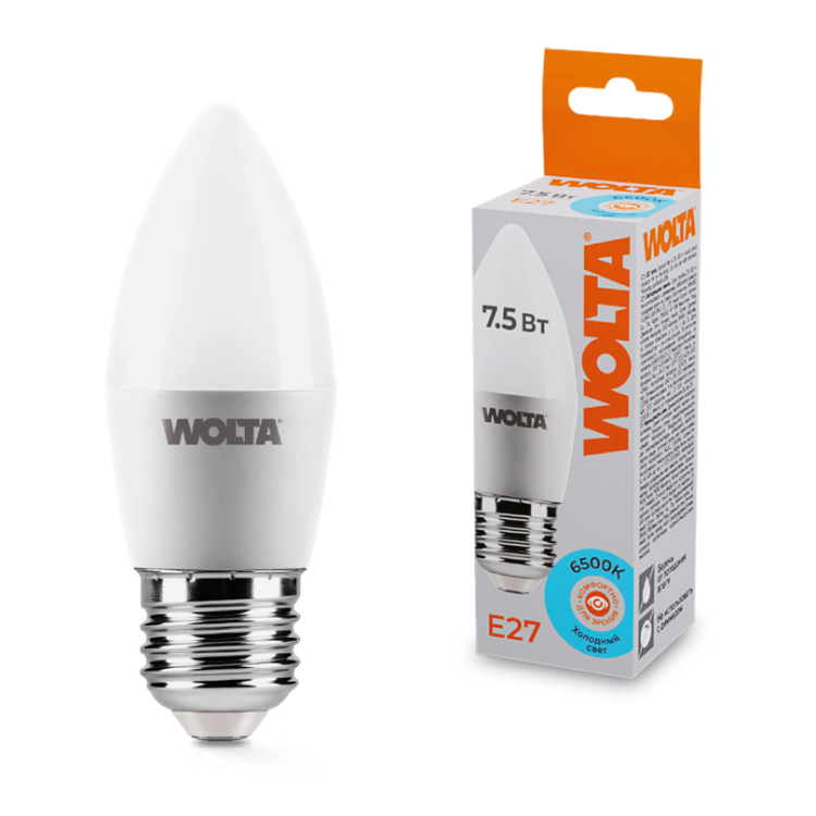 WOLTA Лампа LED C37 7.5Вт 625лм 6500К Е27 1/50