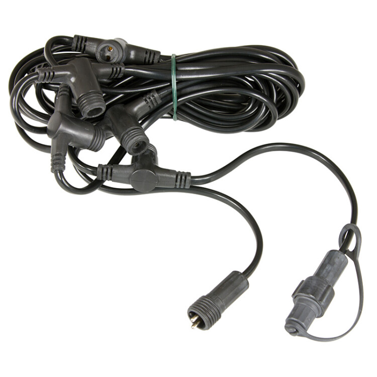 Комплект подключения "Светодиодныx сосулек" 9,5 V длиной 50 см и 80 см. Длина шнура - 6,5 метра, 5 патронов, шаг патронов - 1,5 метра, цвет провода - черный. Комплекты могут соединяться между собой.