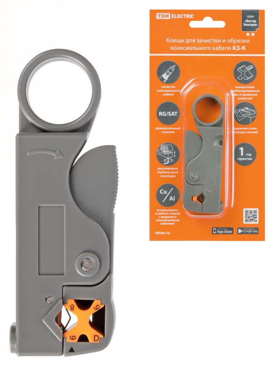 Клещи КЗ-К, зачистка коаксиального кабеля RG-58/59/6/SAT, регулируемые ножи, «МастерЭлектрик» TDM (кр.1шт)