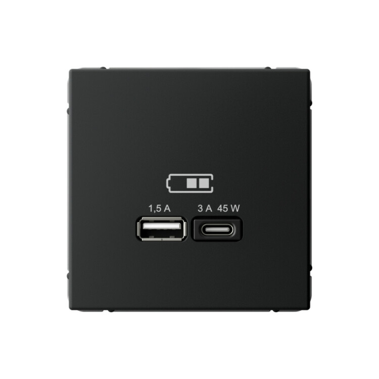 Розетка Systeme Electric серии ArtGallery в цвете карбон двойная USB с разъемами типа A+C высокоскоростная.