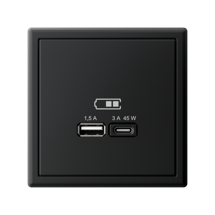 Самая современная USB-зарядка с двумя разъемами позволяет заряжать как стандартные мобильные устройства через разъем типа А, так и новейшие устройства с разъемом типа С.