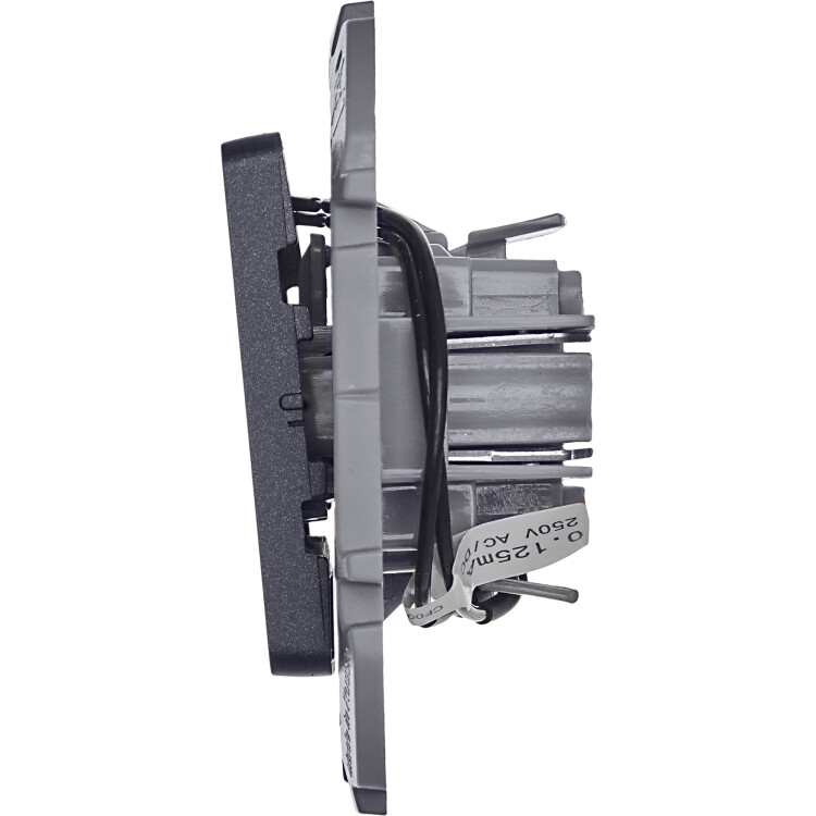 Выключатель одноклавишный с подсветкой/индикацией скрытого монтажа Legrand/Daccord Inspiria, цвет "Антрацит", номинальный ток 10АХ, напряжение ~250В, безвинтовые зажимы.