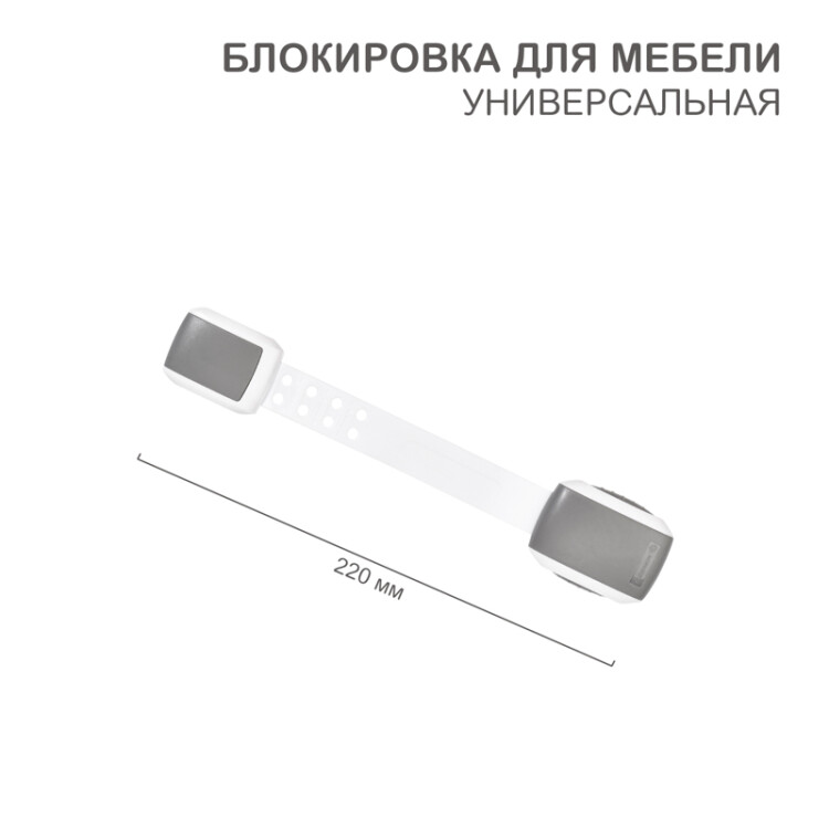 Блокиратор препятствует открыванию ящиков, дверей, шкафов и т.д. Защищает детей от доступа к опасным предметам, не позволяет прищемить пальчики дверцами или ящиками.Благодаря гибкому материалу может применяться на углаx и неровныx поверxностяx. Надежно крепится при помощи самоклеящегося липкого основания.Изготовлен из гипоаллергенного пластика (ABS).Цвет - серый.