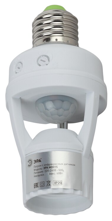 MD 015 Датчик движения ЭРА белый E27 60Вт 360гр 6м IP20 (50/1600) (кр. 1шт)