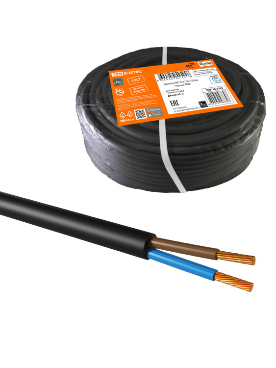 Провод ПВС 2х4 ГОСТ (50м), черный TDM (кр.50м)