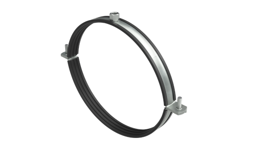 Хомут для воздуховодов с изоляцией и гайкой М8 BHV используется для монтажа воздуховодов круглого сечения. Легкая регулировка хомута по внешнему диаметру трубы за счет наличия двух винтов. Снижает уровень шума до 15 дБ в соответствии с DIN 4109. Применим для труб диаметром 560 мм.