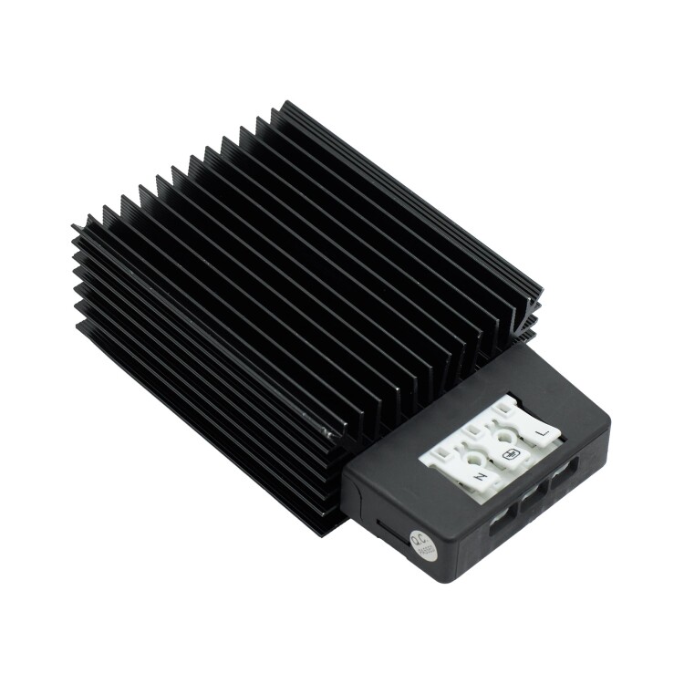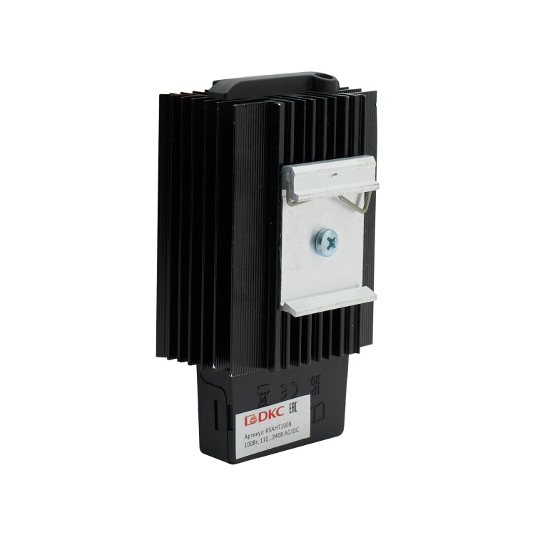 Обогреватель в черном алюминиевом корпусе мощностью 100 Вт предназначен для поддержания необходимой температуры внутри электротехнического шкафа. Работает от напряжения 48 В постоянного напряжения. Обогреватель изготовлен из высококачественных материалов, обеспечивающих надежную работу. Степень защиты – IP20. Благодаря компактным размерам 50x70x120 мм этот обогреватель легко устанавливается в ограниченном пространстве. Рабочий диапазон температур от –45 до +70 ˚C делает его подходящим для использования в суровых условиях эксплуатации. Обогреватель оснащен нагревательным элементом РТС-типа, что обеспечивает стабильную и долговечн ую работу.