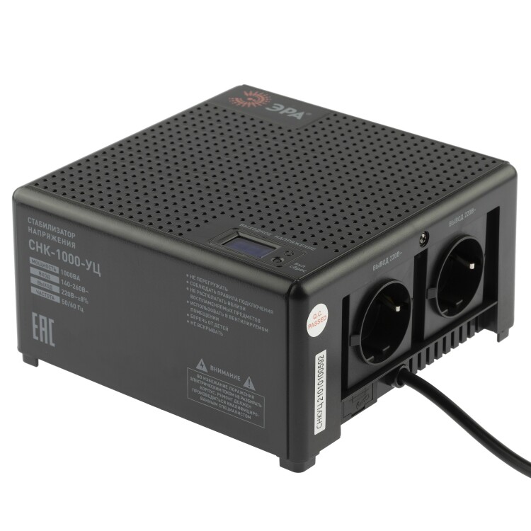 Стабилизатор напряжения компактный однофазный релейный цвет чёрный модели CНК-1000-УЦ. Номинальные характеристики (полная мощность / диапазон входного напряжения): 1000ВА 140-260В . Предназначен для поддержания стабильного однофазного напряжения питания бытовых приборов при отклонениях значений сетевого напряжения. Выбирая стабилизатор, нужно знать, какое электрооборудование будет к нему подключено: один прибор, группу приборов (наиболее чувствительных к перепадам напряжения в сети) либо вся домашняя (офисная) техника. Затем необходимо рассчитать суммарную мощность защищаемых электропотребителей. Основное условие выбора мощности стабилизатора напряжения - суммарная мощность подключаемой к нему нагрузки не должна превышать полной мощности самого стабилизатора (в противном случае автоматика стабилизатора будет их просто отключать). Точные значения мощности можно узнать из паспортных данных Вашего конкретного потребителя. Стабилизатор подбирается с запасом в 25-30% к его полной мощности.