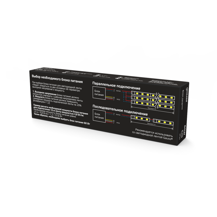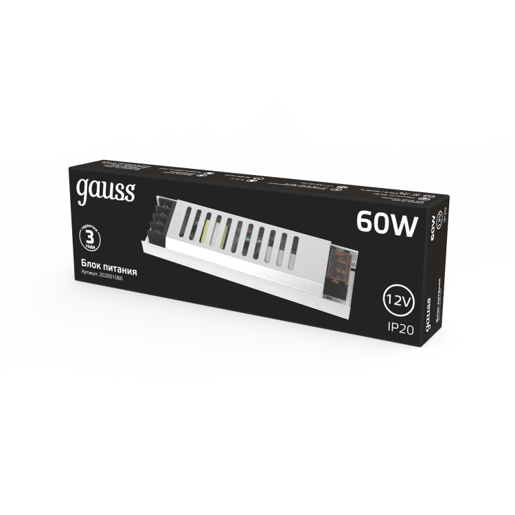 Блок питания Gauss 60W 12V IP20 предлагает превосходное соотношение цены и качества, гарантирует стабильное и безопасное питание в тече