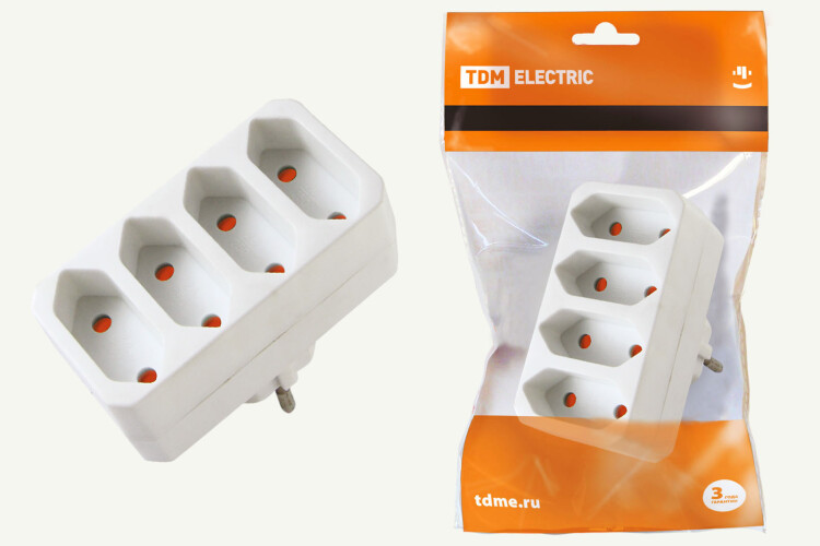 Блок на 4 гнезда 2П 2,5 А 250 B под плоскую вилку белый TDM (кр.1шт)