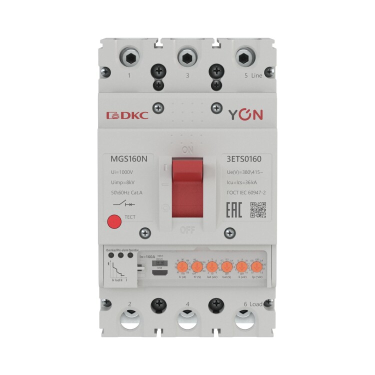 Автоматический выключатель в литом корпусе «YON макс» (YON max) MGS160N-3ETS0160 со значением номинального тока In 160 А и отключающей способностью Ics 36 кА применяется в сетях низкого напряжения до 415 В. Аппарат используется для рабочих включений и отключений нагрузок и для защиты от перегрузок и коротких замыканий. Автоматические выключатели в литом корпусе «YON макс» (YON max) серии MGS используются при строительстве и модернизации многоквартирных жилых комплексов, административно-коммерческих центров и объектов социальной инфраструктуры. Преимуществами серии MGS являются регулируемый электронный расцепитель, разнообразие ассортимента для реализации любого проекта электроснабжения, надёжная защита и долговечность, удобный монтаж и гарантия производителя 5 лет