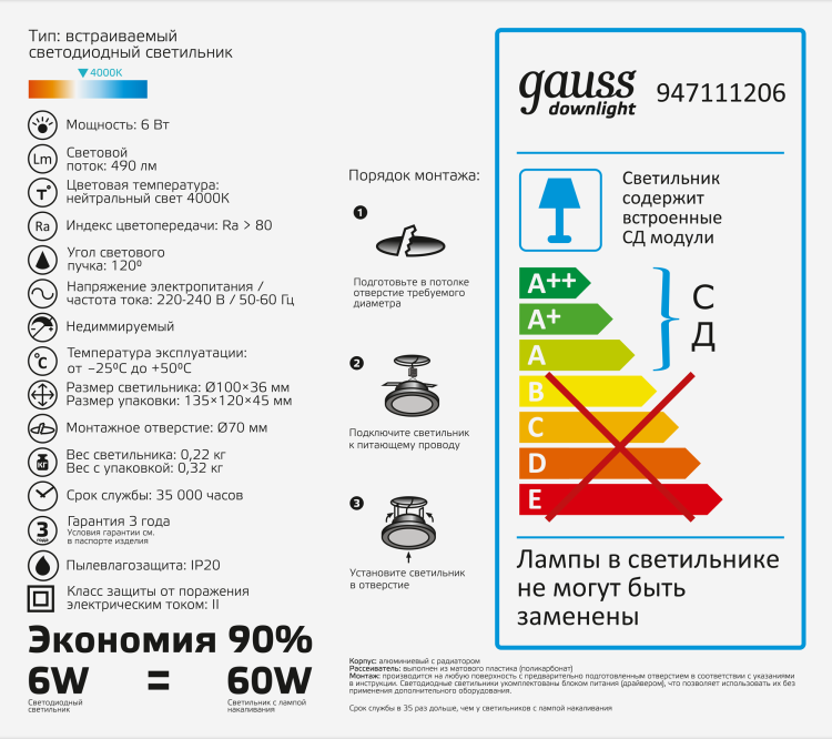 Светодиод. (LED) несменная