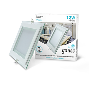 Светодиодный встраиваемый светильник Gauss, квадратный с декоративным стеклом, 12W 4000K 1/40