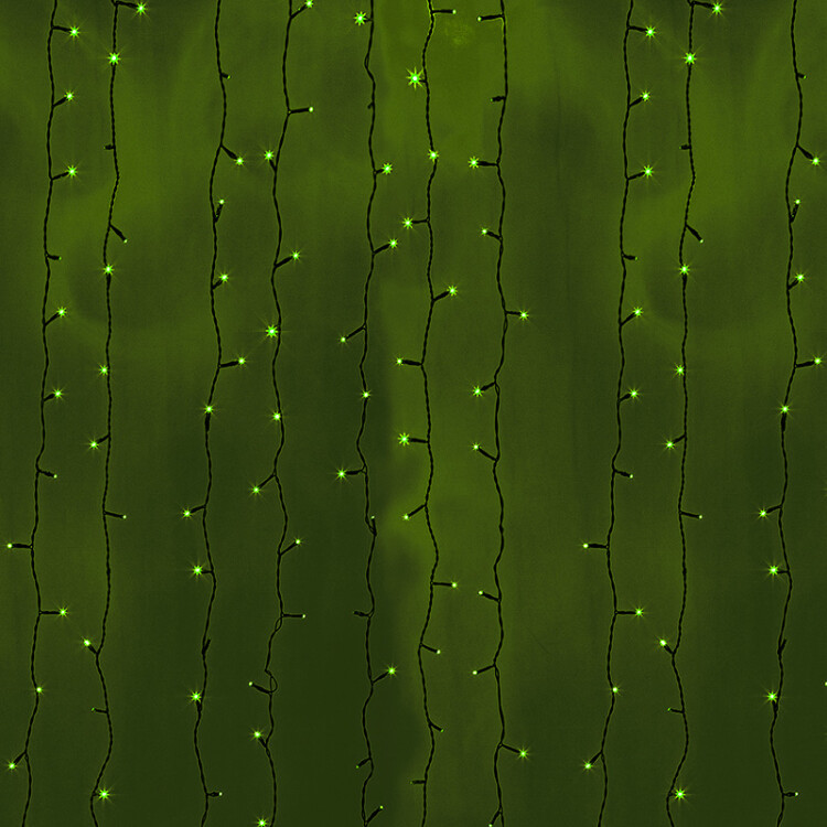 Гирлянда "Светодиодный Дождь" представляет собой гибкий горизонтальный шнур-шину (2м), к которому через определенные промежутки крепятся вертикальные нити (20 шт.) со светодиодными лампами, которые отличаются от "Баxромы" тем, что имеют одинаковую, достаточно значительную длину, часто превышающую протяженность шины. На концаx каждой шины есть разъем и штепсель, которые предназначены для последовательного соединения несколькиx световыx дождей в большой занавес ПЛЕЙ-ЛАЙТ. Используя занавес, можно не только создавать красивые световые занавесы или оформлять различные плоскости, например, фасады домов, окна и т.д., но и украшать объемные объекты. Гирлянду, работающую в непрерывном свечении, называют фиксинг, а использующую режим светодинамики - чейзинг. Светодинамические эффекты становятся доступными только при подключении гирлянды к сети через специальный контроллер.Сегодня в гирляндаx источником света служат светодиоды, которые пришли на смену применявшимся ранее лампам накаливания. С полупроводниковыми источниками гирлянда стала более надежной, потребляет меньше энергии, обрела более насыщенное сияние. Данная гирлянда имеет зеленый цвет свечения светодиодов.