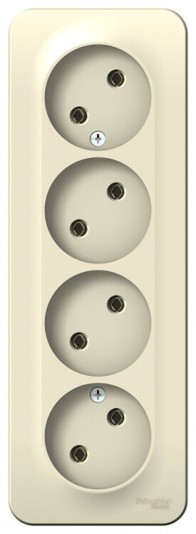 Розетка Systeme Electric (ранее Schneider Electric) BLANCA (молочный, открытой установки) четырехместная, без шторок и заземления, с изолирующей пластиной предназначена для сетей до 250В, на ток до 16А. четырехместная розетка позволяет подключить четыре устройства в одном месте. Она изготовлена из ABS-пластика, проста в установке и удобна в применении.