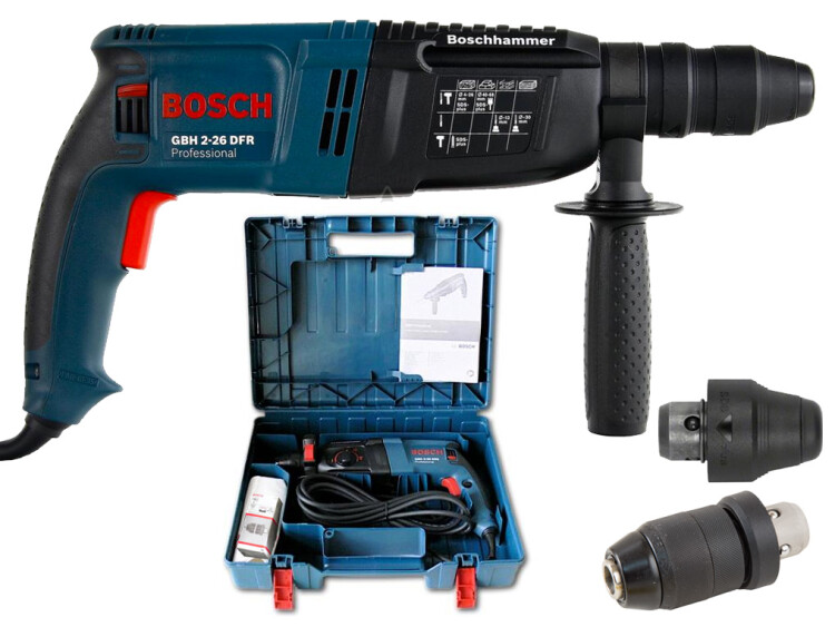 Перфоратор GBH 2-26 DFR 800Вт, 3реж., 2.7Дж, SDS-Plus + б/заж., 0-4000 уд/мин, 0-900 об/мин, для буров 4-26 мм, коронки 68мм, кейс, 2.9кг (BOSCH)