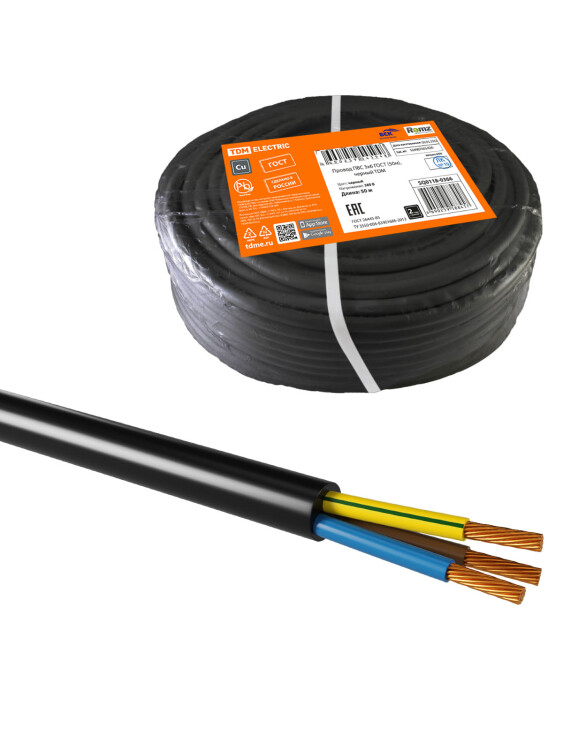 Провод ПВС 3х6 ГОСТ (50м), черный TDM (кр.50м)