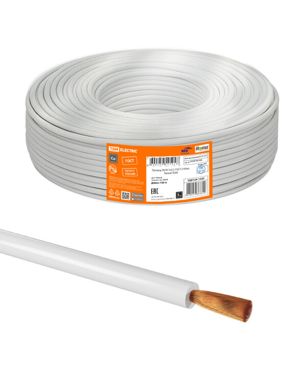 Провод ПуГВ 1х2,5 ГОСТ (100м), белый TDM (кр.100м)