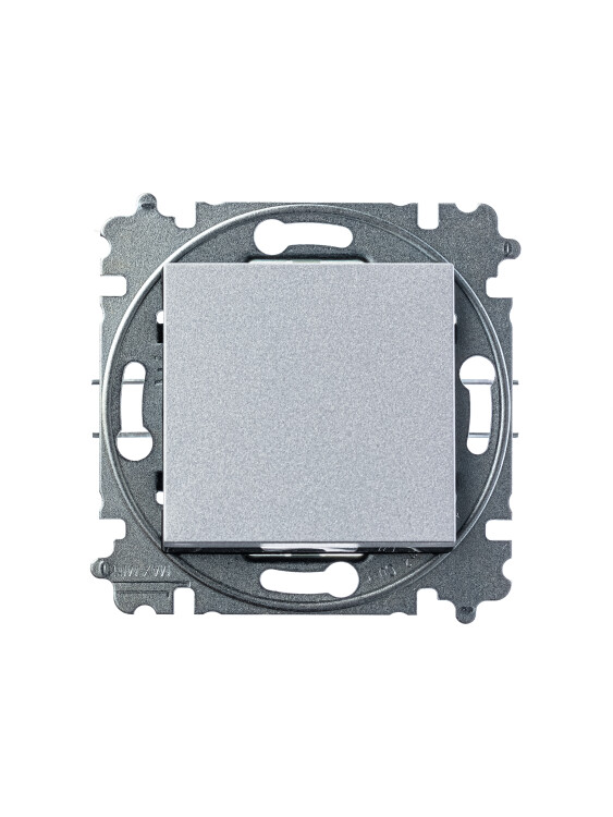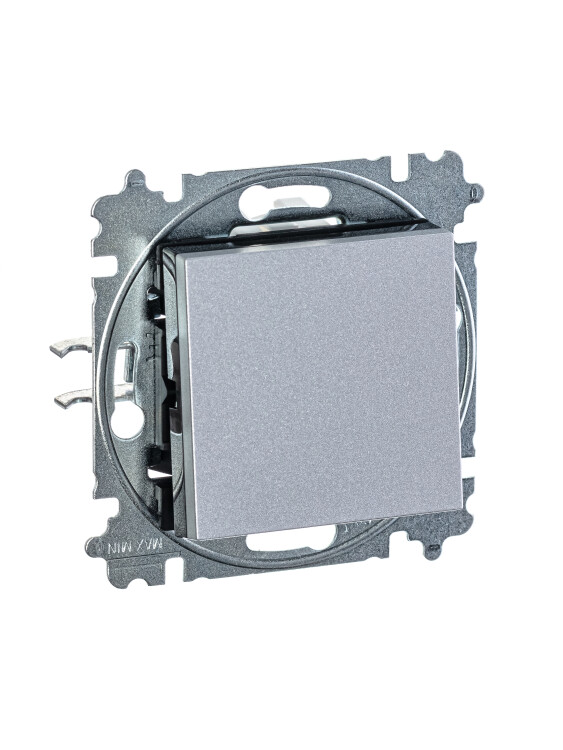 Переключатель 1-клавишный, Levit, серебро/дымчатый чёрный (кр.15шт)