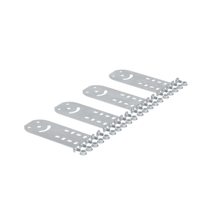 Крепежная пластина служит шарнирным соединителем для лотков, применение которого позволяет изменить уровень прокладки трассы, наклонив её под проивзольным углом. Аксессуар поставляется в комплекте со всеми необходимыми для монтажа метизами. Пластина применяется с лотками линейки "S5 Combitech" с высотой борта 35 мм. Аксессуар представлен в исполнении "Сталь, оцинкованная по методу Сендзимира".