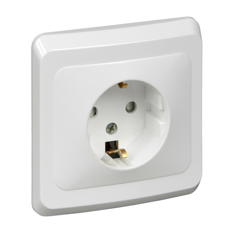 Розетка Systeme Electric (ранее Schneider Electric) ЭТЮД (белый, скрытой установки) одноместная, с заземлением и шторками предназначена для применения в сетях до 250В, на ток до 16А. Шторки открываются при одновременном давлении в оба отверстия и препятствуют проникновению посторонних предметов. Они обеспечивают дополнительную безопасность в доме, где находятся дети. Сделано в России.